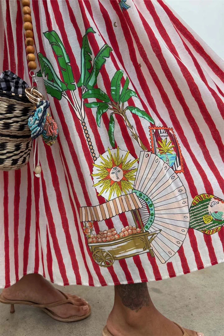 Red Stripe Midi Casual Dress